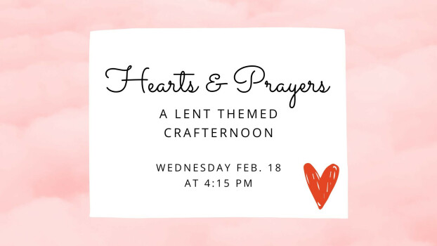 This Crafternoon will take place on Ash Wednesday with a meaningful craft to help focus even littles hearts and minds as we start the Lenten season.